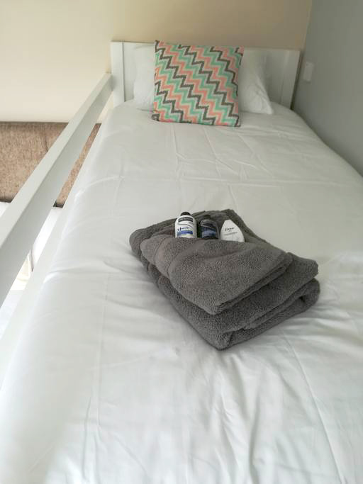 - Towels, bed linens, soap & shampoo